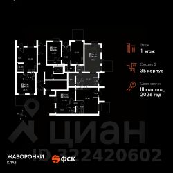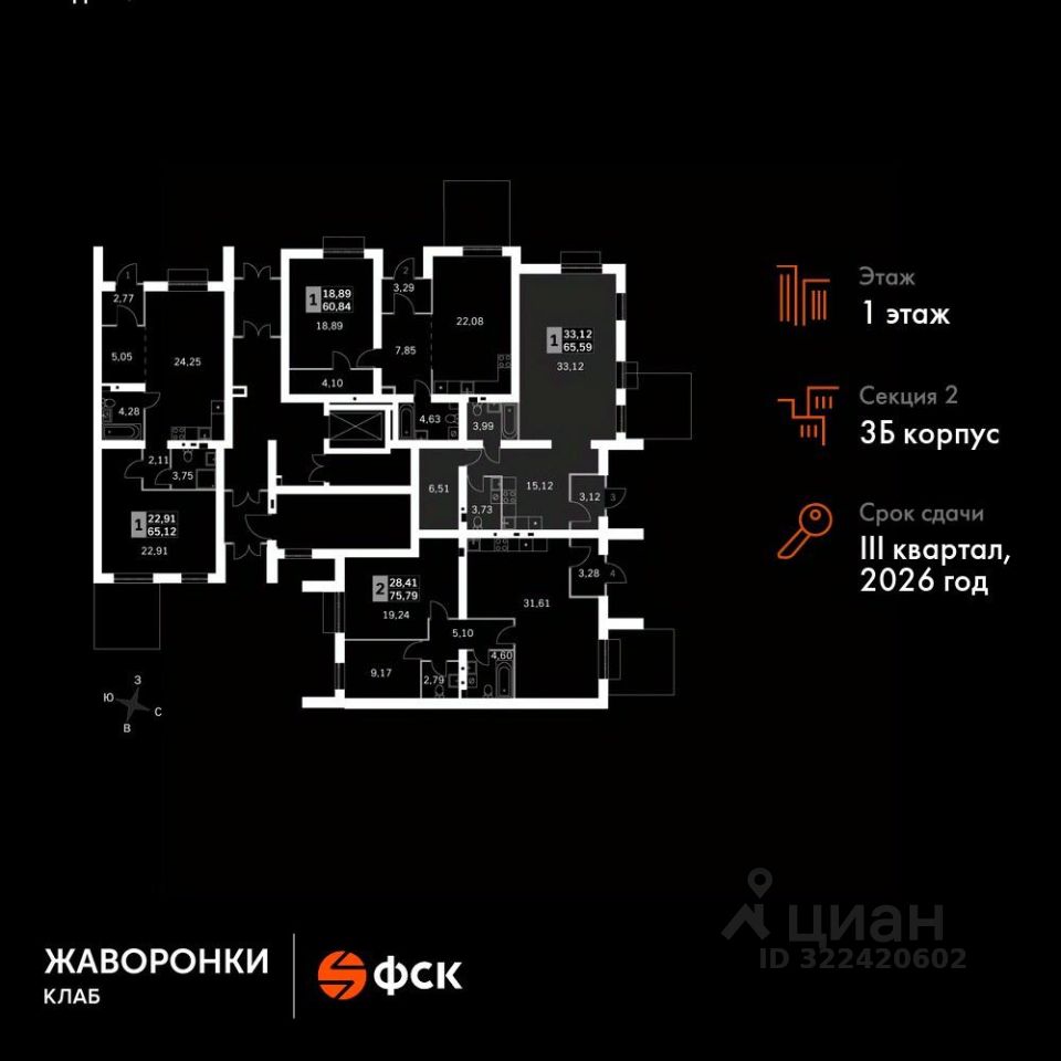 Продаётся 2-к квартира номер 17 общей площадью 65.59 кв.м на 1-м этаже 4 этажного дома. Без отделки.