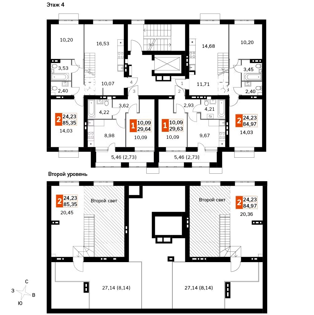 Продаётся 1-к квартира номер 48 общей площадью 29.63 кв.м на 4-м этаже 4 этажного дома. Без отделки.