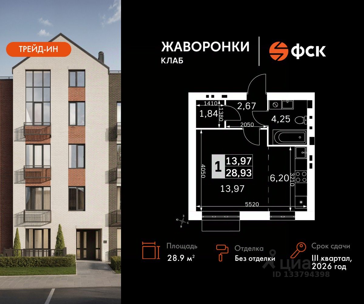 Продаётся студия номер 90 общей площадью 28.93 кв.м на 3-м этаже 4 этажного дома. Без отделки.
