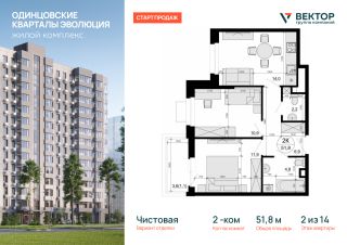 Продается 2-комн. кв-ра площадью 51,8 кв.м на 2 этаже 14 этажного дома в ЖК "Одинцовские кварталы Эволюция" от Группа компаний Вектор. Жилой комплекс "Одинцовские кварталы" расположен в окружении живописного леса и исторических стародачных поселков, создавая атмосферу загородного уюта и культурной ценности. Этот район всегда считался престижным: здесь жили ученые, писатели и деятели искусства, что придает комплексу особый характер.