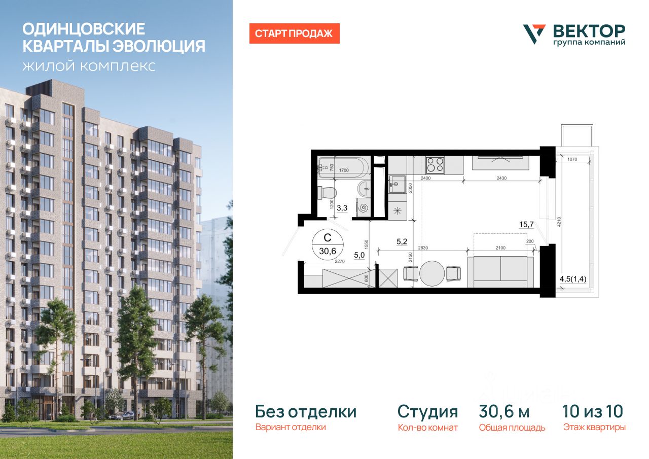 Продается квартира студия площадью 30,6 кв.м на 10 этаже 10 этажного дома в ЖК "Одинцовские кварталы Эволюция" от Группа компаний Вектор. Жилой комплекс "Одинцовские кварталы" расположен в окружении живописного леса и исторических стародачных поселков, создавая атмосферу загородного уюта и культурной ценности. Этот район всегда считался престижным: здесь жили ученые, писатели и деятели искусства, что придает комплексу особый характер.