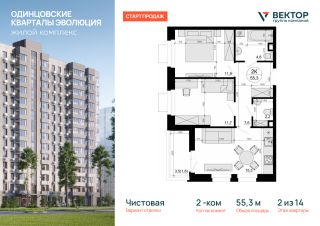 Продается 2-комн. кв-ра площадью 55,3 кв.м на 2 этаже 14 этажного дома в ЖК "Одинцовские кварталы Эволюция" от Группа компаний Вектор. Жилой комплекс "Одинцовские кварталы Эволюция" расположен в окружении живописного леса и исторических стародачных поселков, создавая атмосферу загородного уюта и культурной ценности. Этот район всегда считался престижным: здесь жили ученые, писатели и деятели искусства, что придает комплексу особый характер.