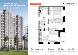 Продается 2-комн. кв-ра площадью 55,3 кв.м на 2 этаже 14 этажного дома в ЖК "Одинцовские кварталы Эволюция" от Группа компаний Вектор. Жилой комплекс "Одинцовские кварталы" расположен в окружении живописного леса и исторических стародачных поселков, создавая атмосферу загородного уюта и культурной ценности. Этот район всегда считался престижным: здесь жили ученые, писатели и деятели искусства, что придает комплексу особый характер.