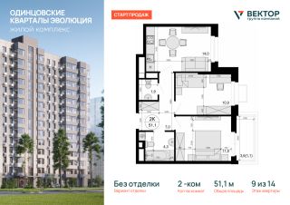 Продается 2-комн. кв-ра площадью 51,1 кв.м на 9 этаже 14 этажного дома в ЖК "Одинцовские кварталы Эволюция" от Группа компаний Вектор. Жилой комплекс "Одинцовские кварталы" расположен в окружении живописного леса и исторических стародачных поселков, создавая атмосферу загородного уюта и культурной ценности. Этот район всегда считался престижным: здесь жили ученые, писатели и деятели искусства, что придает комплексу особый характер.