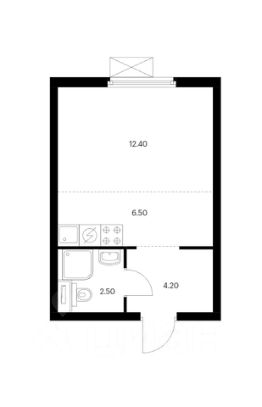 Общая жилая зона с кухней составляет 18.9 кв.м.