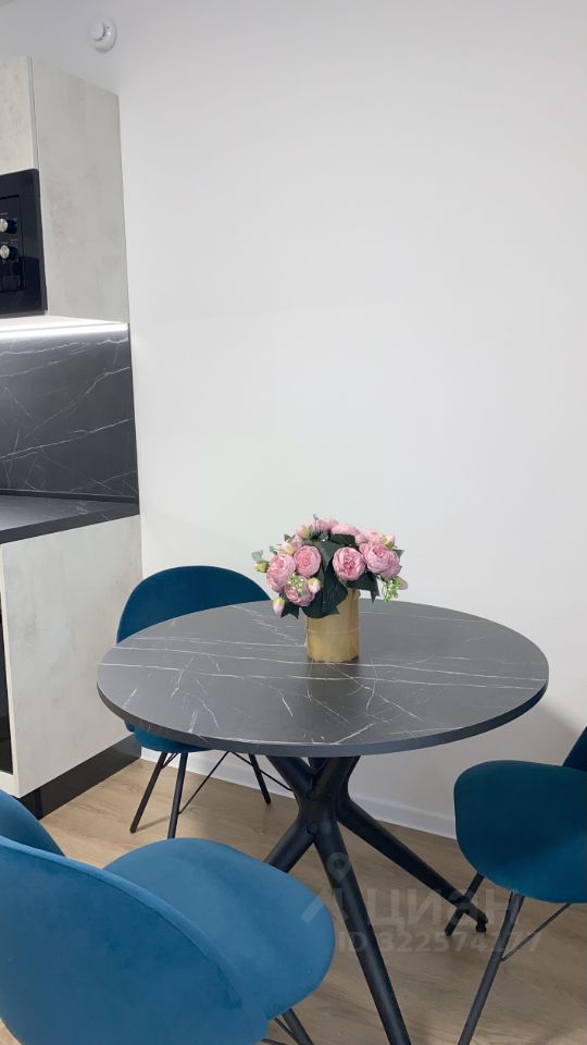 Кухонный гарнитур, обеденный стол и стулья изготовлены фабрикой "Стильные кухни". Для удобства установлены кондиционер, варочная индукционная плита, посудомоечная машина, фильтр для питьевой воды, духовой шкаф, микроволновая печь.