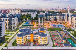 Масштабное озеленение в концепции "двора-парка" и множество площадок отдыха для взрослых и детей. В 5 минутах ходьбы расположен Мещерский лесопарк. В жилом комплексе уже построены и работают 2 муниципальных детских сада с бассейном, школа на этапе строительства. В непосредственной близости - частные и муниципальные детские сады и школы, кафе и рестораны, продуктовые магазины, салоны красоты и другие готовые объекты городской инфраструктуры.
