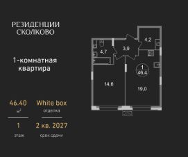 Продается однокомнатная квартира в девятиэтажном монолитном доме жилого комплекса "Резиденции Сколково".