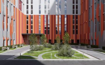 "М1 Сколково" — 17-этажное здание с ярким современным дизайном в экологически благоприятном районе.