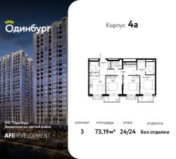 Предлагаем вашему вниманию уютную 3-комнатную квартиру общей площадью 73,19 кв.м на 24 этаже в новой очереди строительства ЖК "Одинбург". Этот обновленный проект от компании AFI Development включает в себя актуальные архитектурные решения и функциональные планировки. Для всех действует предложение от застройщика Назови свою скидку, подробности акции уточняйте у менеджеров отдела продаж.