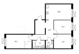 Продаётся трёхкомнатная квартира, распашонка в ЖК Одинцово-1, ул. Каштановая, дом 4. Просторная трёхкомнатная квартира площадью 89,3 кв. М, расположена в 15-этажном доме на 13-м этаже. Квартира состоит из трёх изолированных жилых комнат (18+12+12), кухни-гостиной (20 кв. М,), двух санузлов и большой прихожей. В большой комнате установлен новый кондиционер.