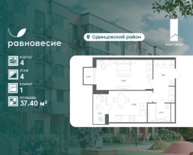 Продаётся квартира с 1 комнатой общей площадью 37.40 кв. метров на 4 этаже жилого квартала комфорт-класса "Равновесие".