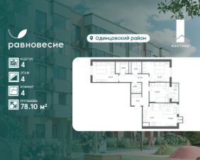 Продаётся квартира с 4 комнатами общей площадью 78.10 кв. метров на 4 этаже жилого квартала комфорт-класса "Равновесие".
