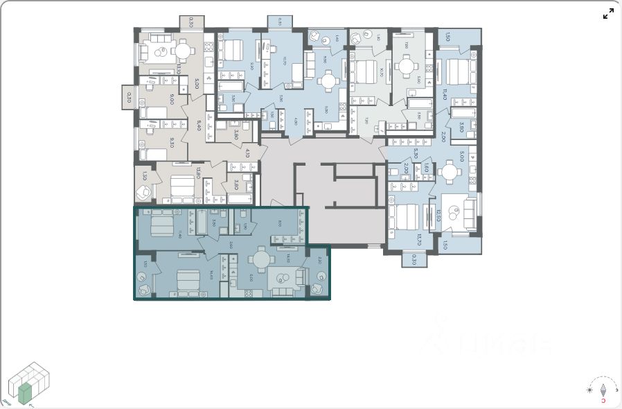 Продаётся квартира с 3 комнатами общей площадью 61.80 кв. метров на 4 этаже жилого квартала комфорт-класса "Равновесие".