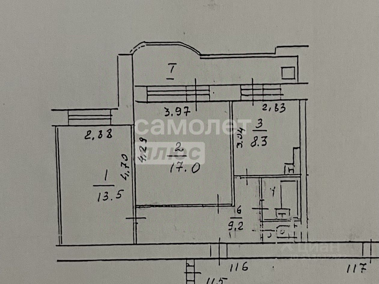 просторные комнаты 17 и 13,5 кв м