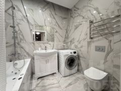 Функциональная планировка: гардеробная, входная зона с плиткой, два раздельных санузла с проточными водонагревателем.