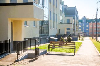 Дом располагается в центре ЖК и хорошо изолирован соседними домами от шума Минского шоссе и железнодорожных путей.
