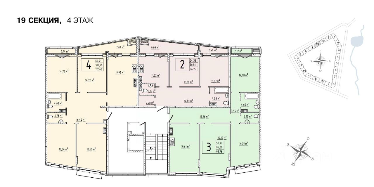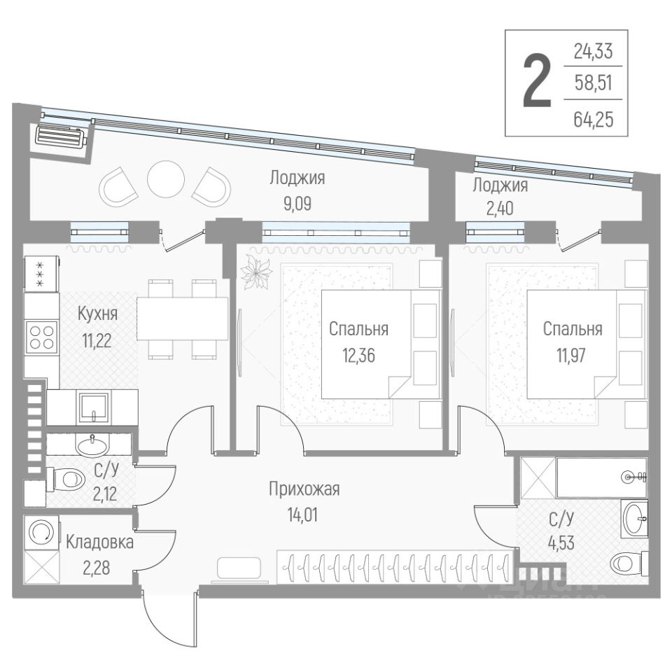 Прямая продажа от застройщика! Продаётся 2-комнатная квартира общей площадью 58,2 кв.м на 4-м этаже 4 этажного дома. Дом сдан.