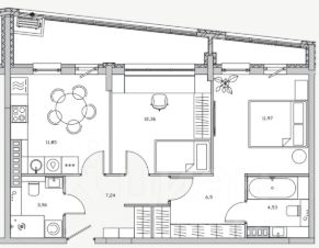 Квартира без отделки в сданном клубном доме "Эльйон" в Одинцовском районе. Свободная планировка. Просторная площадь квартиры с большими окнами и высотой потолка 3,1 м.