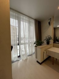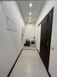 В квартире выполнен хороший дорогой ремонт с использованием современных качественных материалов, выровнены стены, шумоизоляция по всему периметру (стены и потолок), гидроизоляция, полы ламинат 33 класса по всей квартире (прихожая и с/у плитка), проточный водонагреватель на все точки, где мокрые зоны-стоят автостопы