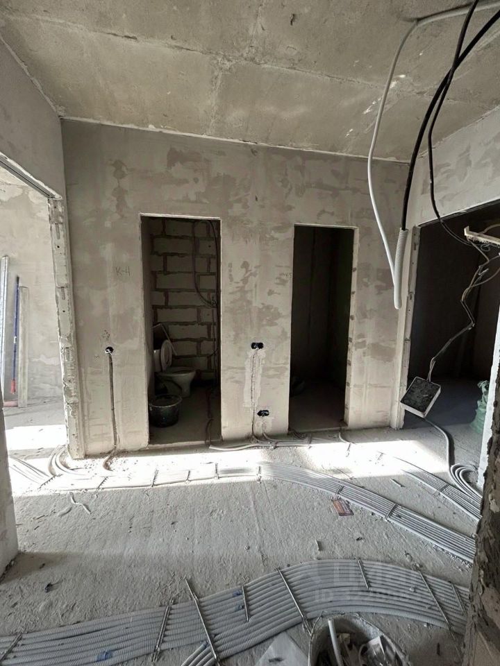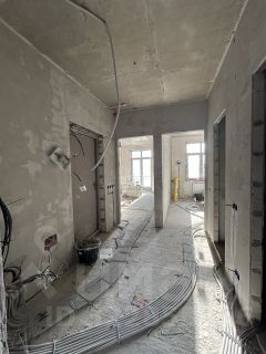 Перегородки сделаны из гипсовой плиты. Отштукатурены стены, выровнены в ноль. Проведена электрика качественным кабелем. Все розетки, выключатели все подведено. Осталось залить полусухую стяжку и квартира готова к чистовой отделке.