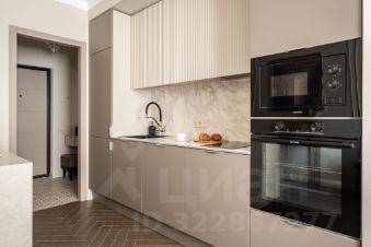 Совмещённая кухня и гостиная с мраморными столешницами, посудомойкой, духовкой, микроволновкой и большим количеством места для хранения. Полноразмерная двухместная кровать в спальне. Отдельная просторная гардеробная. Санузел со стиральной и сушильной машиной, большая душевая. Отдельный балкон с видом на двор
