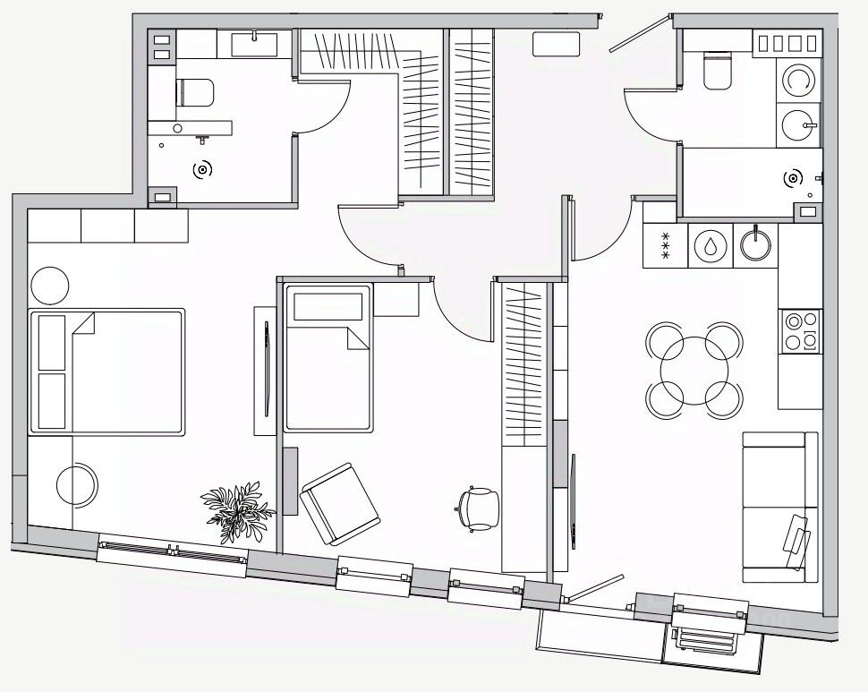 Благоустроенное пространство внутреннего двора. На территории проекта расположены зоны отдыха, оборудованные игровые и спортивные площадки. Безопасная закрытая территория внутреннего двора с видеонаблюдением. Подземный и гостевой паркинг, индивидуальные кладовые.
