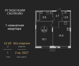 Продается однокомнатная квартира в девятиэтажном монолитном доме жилого комплекса "Резиденции Сколково".