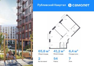 Строим кварталы для жизни с заботой о будущем. Предлагается 2-комнатная квартира комфорт-класса 65,75 кв.м в корпусе 54 на 7 этаже, в ЖК "Рублевский Квартал"