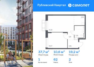 Строим кварталы для жизни с заботой о будущем. Предлагается 1-комнатная квартира комфорт-класса 37,7 кв.м в корпусе 62 на 2 этаже, в ЖК "Рублевский Квартал"