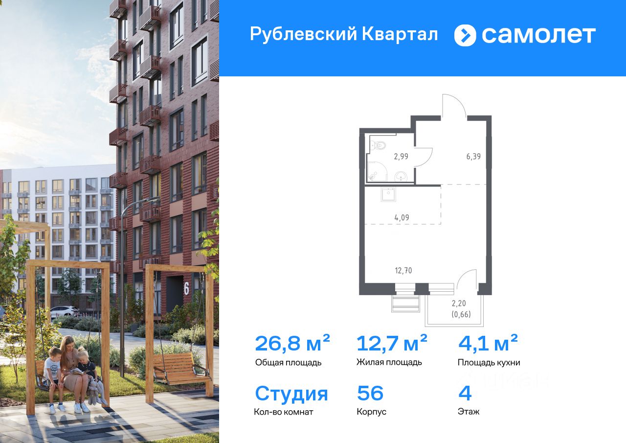 Строим кварталы для жизни с заботой о будущем. Предлагается квартира студия комфорт-класса 26,83 кв.м в корпусе 56 на 4 этаже, в ЖК "Рублевский Квартал"