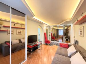 кухня-гостиная, спальня с балконом, совмещенный санузел, прихожая. Имеется вся необходимый мебель бытовая техника. Установлен кондиционер.