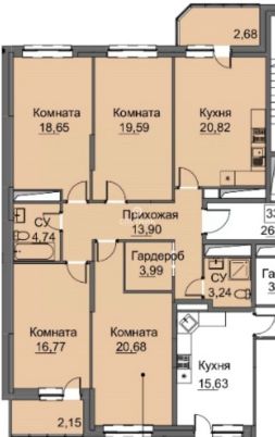 Уникальная планировка: просторная кухня-гостиная ( 21 кв.м.) , четыре изолированные комнаты (21 кв.м., 20 кв.м. 19 кв.м. и 16.7 кв.м.), два вместительных балкона, два санузла, вместительная прихожая (14 кв.м.) и гардеробная (4 кв.м.) высокие потолки, угловая квартира и шикарный вид на две стороны - квартира всегда будет наполнена воздухом и светом.