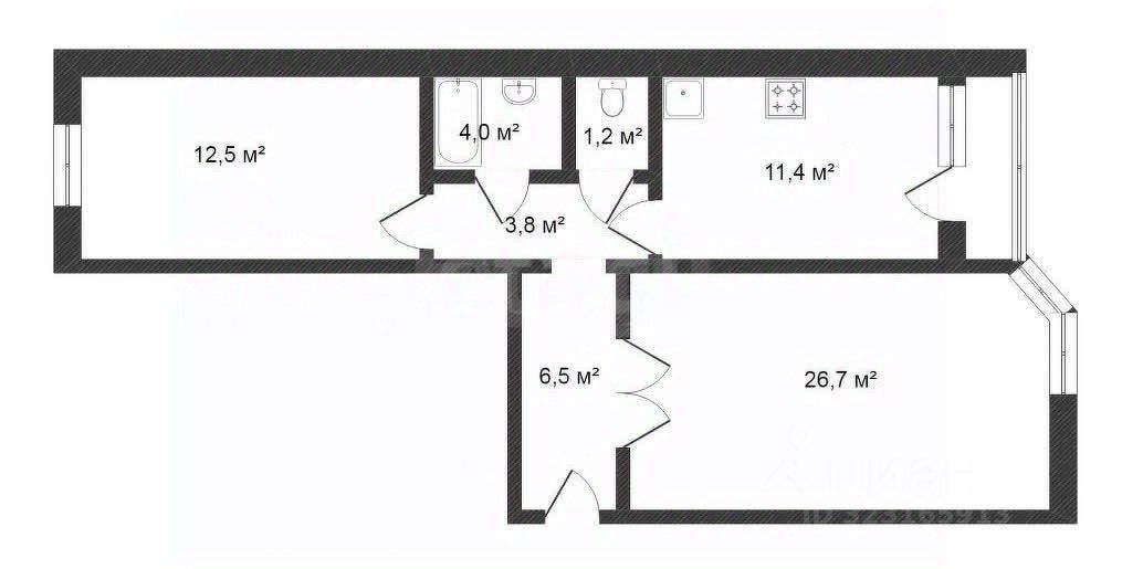 В продаже большая двухкомнатная квартира площадью 66,1кв.м.