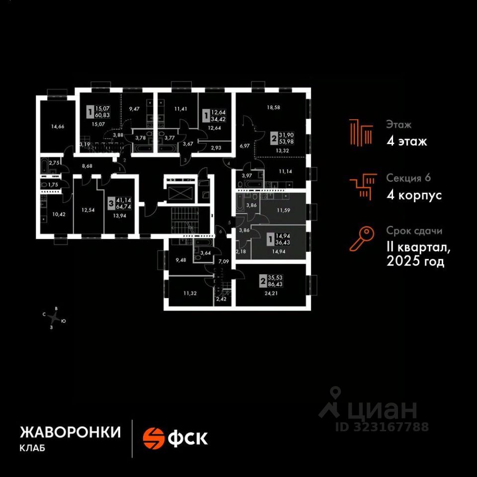 Продаётся 1-к квартира номер 140 в сданном корпусе общей площадью 35.4 кв.м на 4-м этаже 4 этажного дома.