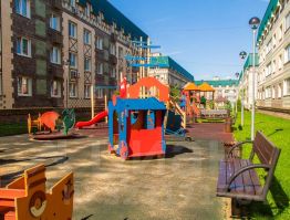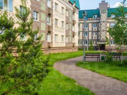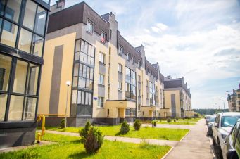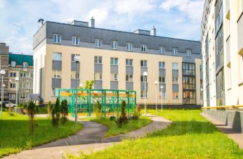 Дом располагается в центре ЖК и хорошо изолирован соседними домами от шума Минского шоссе и железнодорожных путей.