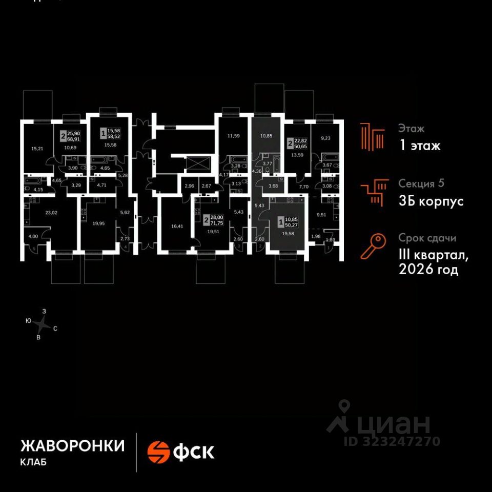 Продаётся 2-к квартира номер 74 общей площадью 50.27 кв.м на 1-м этаже 4 этажного дома. Без отделки.