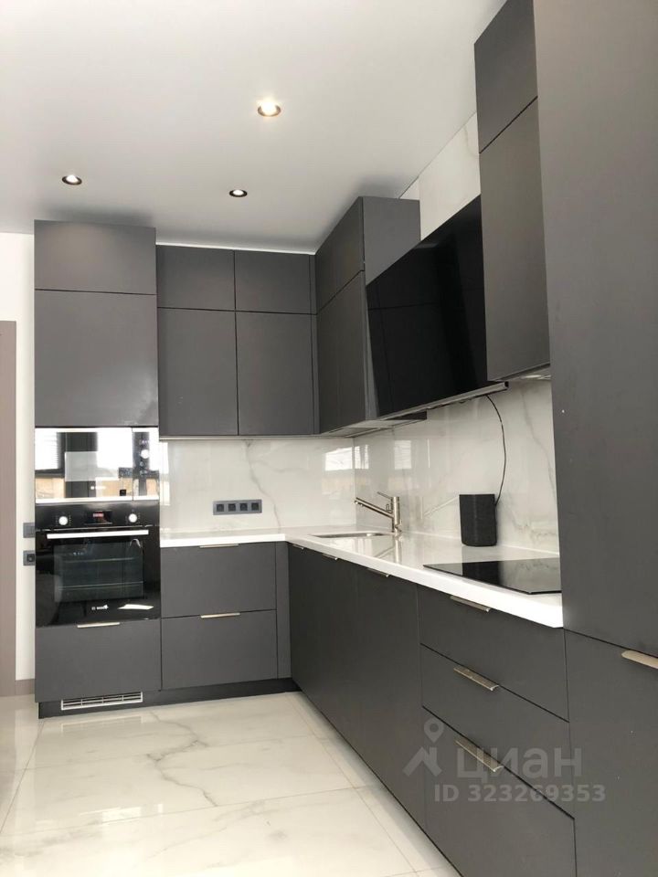 * Двери из МДФ в бархатистой окраске оттенка Grey и авторский гарнитур "Кухонный Двор" из МДФ в глубоком насыщенном Barhat Deep Grey. Все механизмы кухни и гардеробной системы — премиум Blum (Австрия).