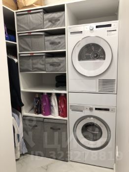 • При входе расположена вместительная гардеробная зона с прачечной, оборудованной техникой Asko