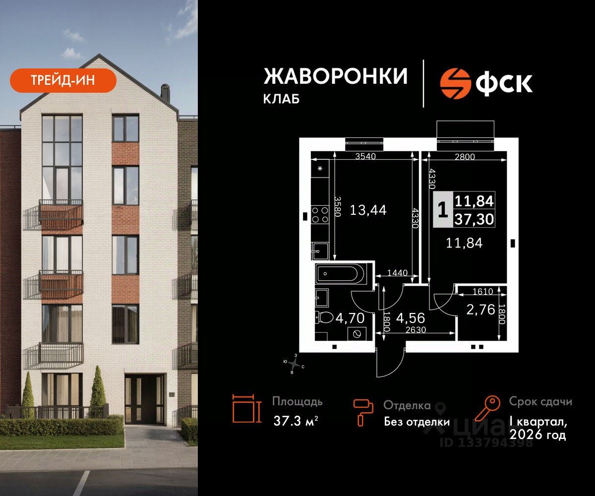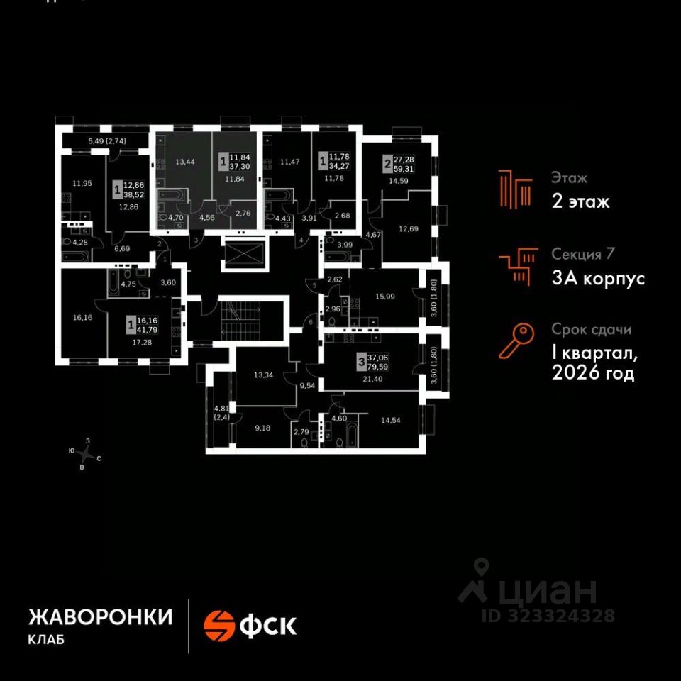 Продаётся 1-к квартира номер 149 общей площадью 37.3 кв.м на 2-м этаже 4 этажного дома. Без отделки.