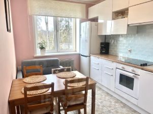 Удобная планировка: просторная комната с выходом на утепленную лоджию, уютная кухня, совмещенный санузел, красивый вид из окон на лес.