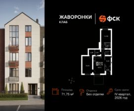 Продаётся 2-к квартира 75 общей площадью 71.75 кв.м на 1-м этаже 4 этажного дома. Без отделки.