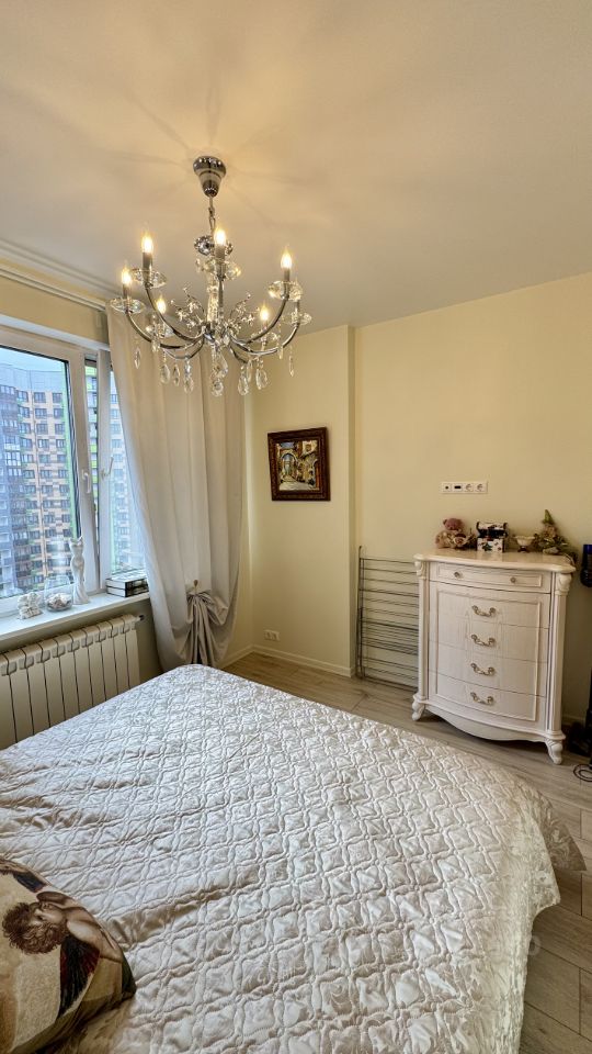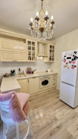 В квартире остаётся встроенная кухня, функциональная сантехника, вместительный шкаф и стиральная машина — можно сразу заезжать и жить. Вся обстановка продумана до мелочей для максимального уюта и удобства: стильные люстры, изысканные текстильные элементы, тёплый пол.
