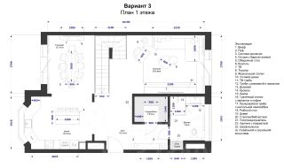 1-й уровень: гостиная, санузел, совмещенная столовая-кухня.