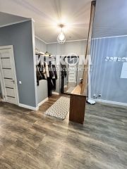 Планировка: просторная кухня, большая входная зона, спланированная под зону гостинной с диваном и ТВ, три отдельные спальни, одна из них с гардеробной, раздельный с/у.