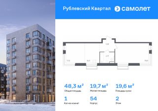Строим кварталы для жизни с заботой о будущем. Предлагается 1-комнатная квартира комфорт-класса 48,33 кв.м в корпусе 54 на 2 этаже, в ЖК "Рублевский Квартал"