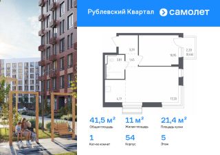 Строим кварталы для жизни с заботой о будущем. Предлагается 1-комнатная квартира комфорт-класса 41,53 кв.м в корпусе 54 на 5 этаже, в ЖК "Рублевский Квартал"
