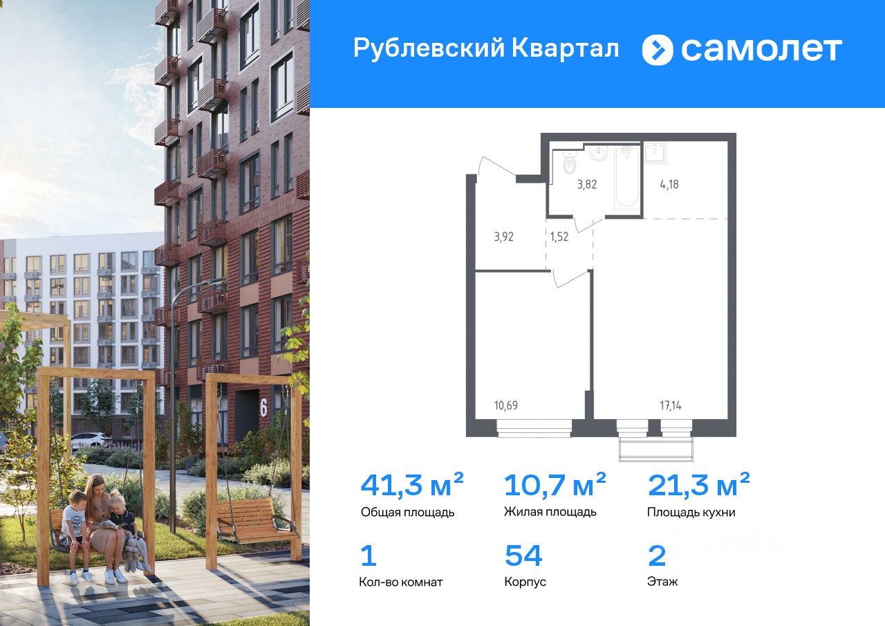 Строим кварталы для жизни с заботой о будущем. Предлагается 1-комнатная квартира комфорт-класса 41,27 кв.м в корпусе 54 на 2 этаже, в ЖК "Рублевский Квартал"