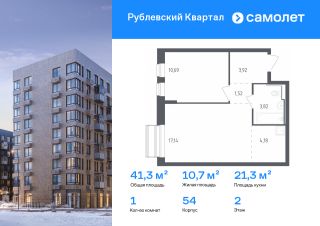 Строим кварталы для жизни с заботой о будущем. Предлагается 1-комнатная квартира комфорт-класса 41,27 кв.м в корпусе 54 на 2 этаже, в ЖК "Рублевский Квартал"