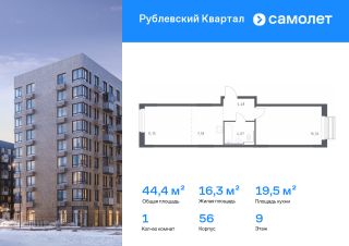 Строим кварталы для жизни с заботой о будущем. Предлагается 1-комнатная квартира комфорт-класса 44,42 кв.м в корпусе 56 на 9 этаже, в ЖК "Рублевский Квартал"